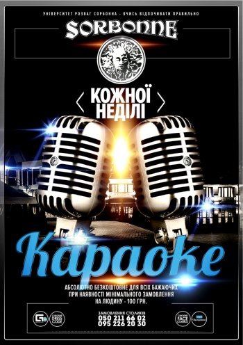 Акція в караоке - БЕЗКОШТОВНІ ПІСНІ всю ніч (при наявності заброньованого столика).