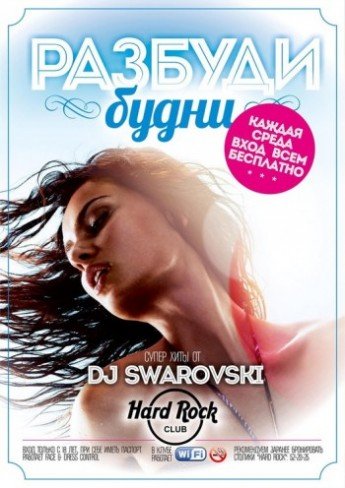 Щосереди на вечірці розбуди БУДНІ, найкрутіші хіти від DJ SWAROVSKI і запальний настрій.