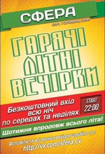 Відпочивайте разом з улюбленим клубом «Сфера» він дарує Вам щонеділі БЕЗКОШТОВНИЙ вхід !!!