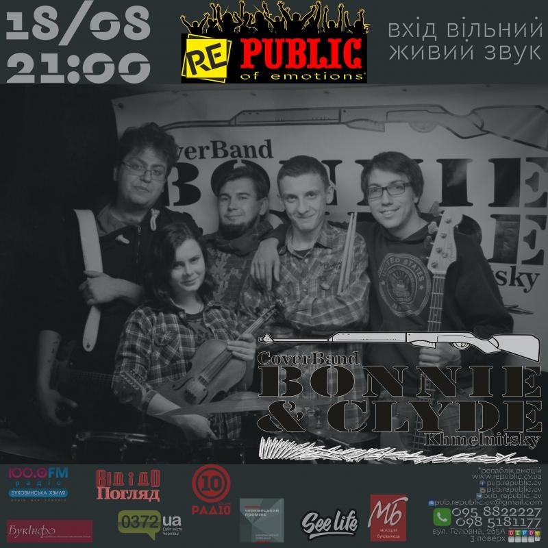 "Bonnie & Clyde" найнеординарніший інструментальний кавер-гурт міста Хмельницького . Студенти Хмельницького музичного коледжу ім.В.І.Заремби здивують своїми цікавими техніками та стилями гри. У їхньому виконанні тільки кращі пісні зарубіжних гуртів та виконавців, таких як: Red Hot Chili Peppers, System of Down, ACDC, ZZ Top, Zaz, The Animals, Nirvana, Michael Jackson, Bill Haley, Moby, Sting, Rammstein, Bee Gees.