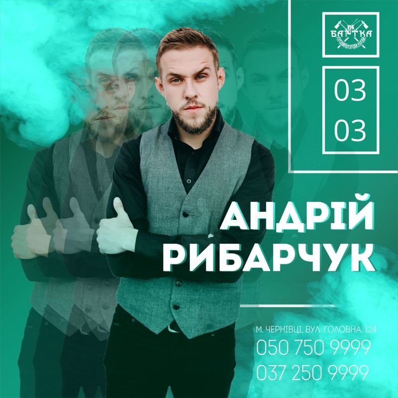 Неділю, 3.03, ми відзначимо яскраво, відкриваючи нашим гостям нові грані якісного відпочинку разом з бендом Андрія Рибарчука на сцені ресторану РК "Бартка".