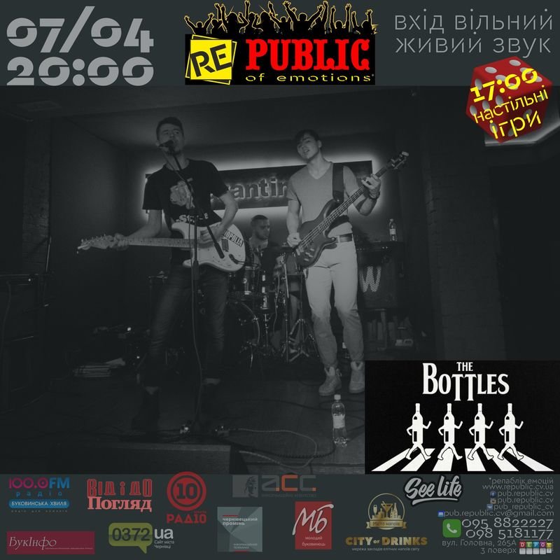 Концерти «The Bottles» схожі на смак якісного віскі - їх запальні ритми спочатку обпікають твоє тіло своїм насиченим смаком, а потім розтікаються по ньому теплотою і п’янкою енергетикою. Вони несуть в собі стільки ж рок-н-ролу. Приходьте на концерт і замовляйте собі подвійну порцію!