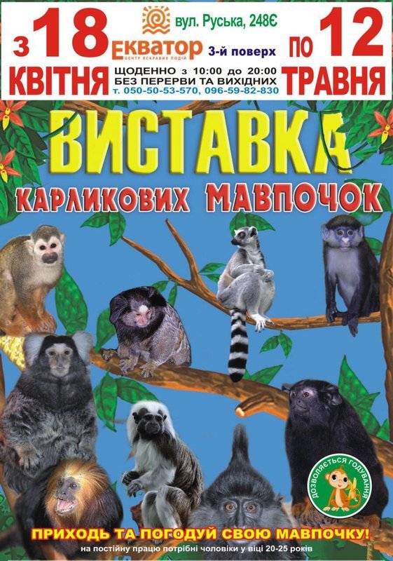 Виставка карликових мавпочок з 18 квітня по 12 травня.