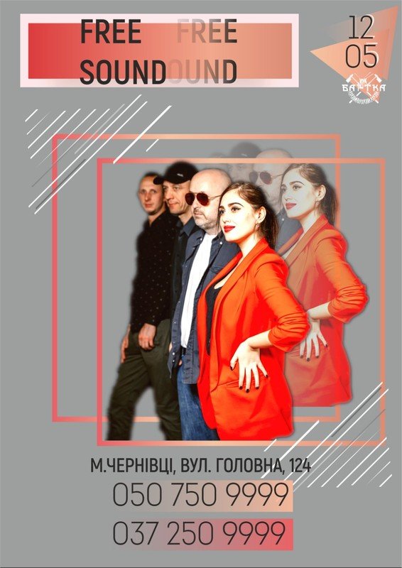 Нeділя, 12.05, з бадьорим настроєм віртуозів нашоі сцeни, гуртом Free Sound, станe чудовим фіналом улюблених подій у ресторані РК“Бартка”!