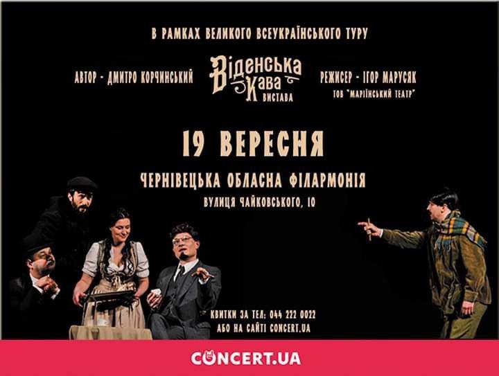 19 вересня, в рамках Великого Всеукраїнського Туру, вистава "Віденська Кава" завітає у Чернівці!