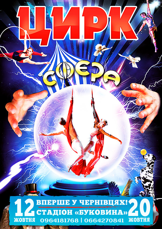 Вперше у вашому місті, зі своєю шоу-програмою, цирк-шапіто "Сфера" на стадіоні Буковина. На Вас чекає грандіозна двогодинна вистава ХХІ століття з програмою: екстремальні трюки учасників міжнародних конкурсів та фестивалів, шоу-балет "Sfera", акробатична ексцентрика, повітряні гімнасти, жонглери, легендарний клоунський дует "Non-Stop", який гарантує відмінний настрій і багато іншого. Програма цирку орієнтована на дитячу та дорослу аудиторію.