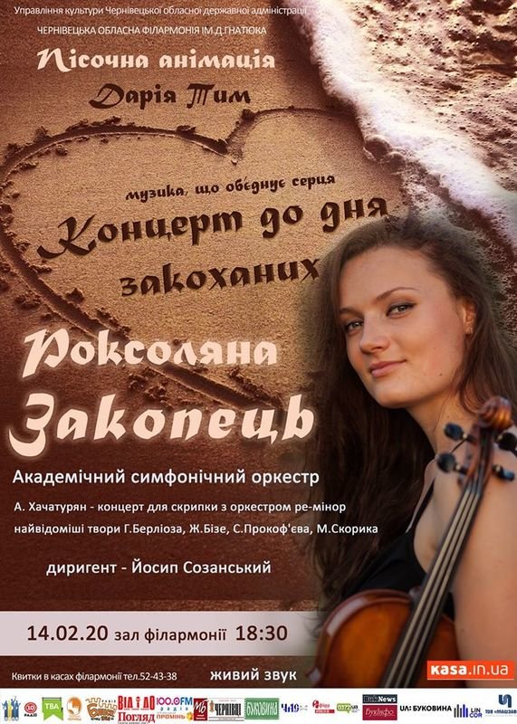 та на сайті https://kasa.in.ua/ua/chernivci/concert/kontsert-do-dnia-zakokhanykh-roksoliana-zakopets