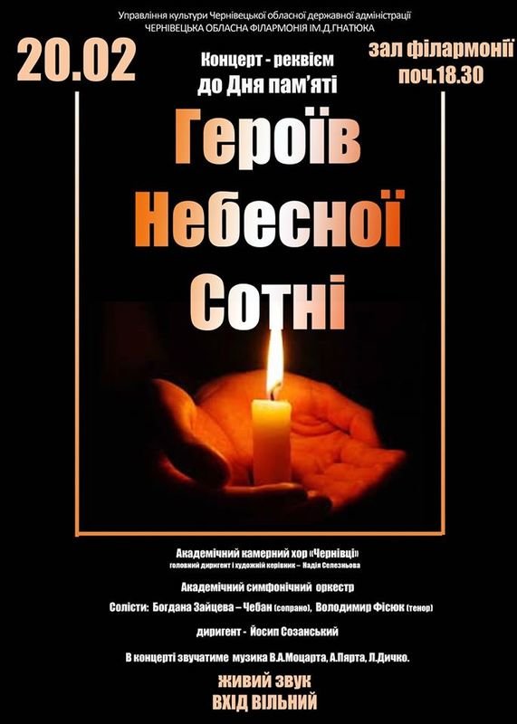 Концерт пам'яті «Небесної сотні» .Академічний симфонічний оркестр, камерний хор «Чернівці», солісти Чернівецької обласної філармонії ім. Д.Гнатюка
