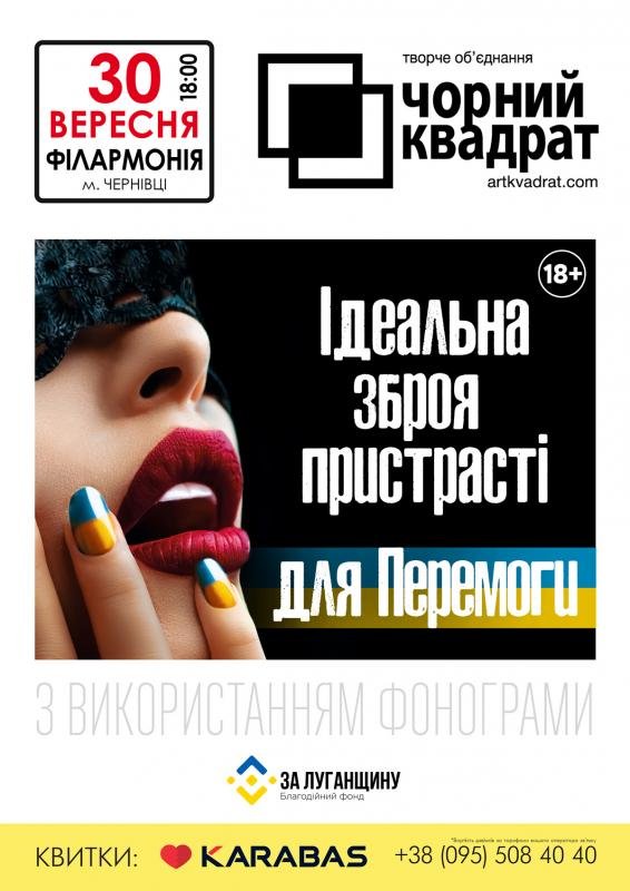 Вистава Чорний квадрат. «Ідеальна зброя пристрасті для Перемоги» в Чернівцях відбудеться 30 вересня 2022 р, 18:00, Чернівецька обласна філармонія.