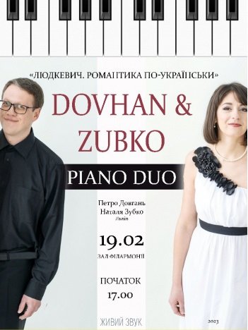 Концерт «PIANO DUO». Dovhan & Zubko «Людкевич. Романтика по-українськи» в Чернівцях відбудеться 19 лютого 2023 р, о 17:00 у Чернівецькій обласній філармонії.