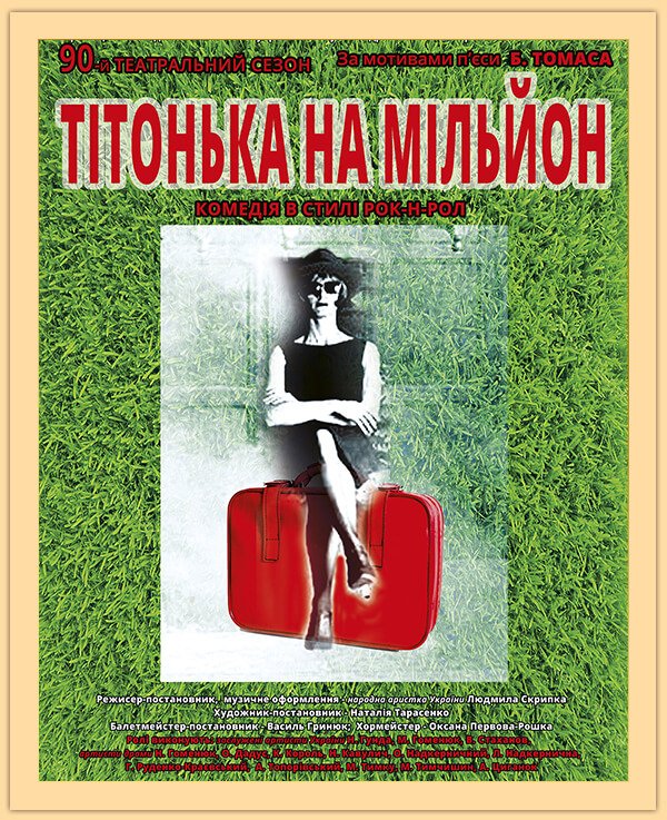 «Тітонька на мільйон» – класика “…Де багато диких мавп і все..”, які хочуть такого простого, людського щастя. Але не так все просто на шляху до кохання, навіть якщо ти студент Оксфорду. Все змішалося: акторські почуття, гра, музика, танець.. в цей вечір на сцені панує його величність Театр!