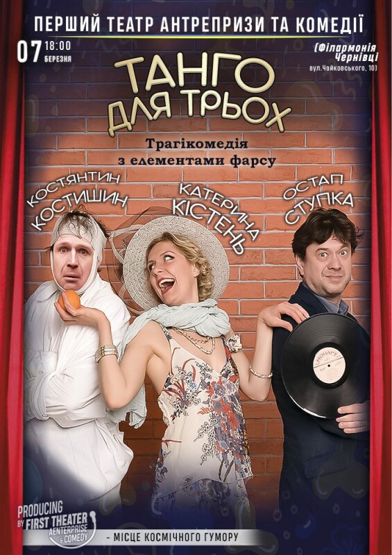 “Танго для трьох” - це унікальна своєрідна трагікомедія, яка більше ніж на 2 години занурить вас у вічну тему - стосунків чоловіка та жінки.