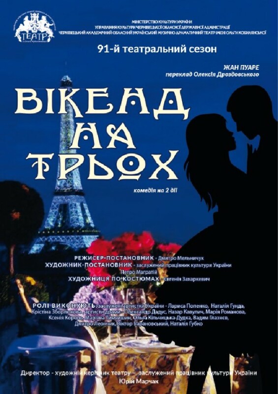Ролі виконують: заслужені артистки України – Лариса Попенко, Наталія Гунда, Крістіна Зборлюкова , артисти драми – Олександр Дадус, Назар Кавулич, Марія Романова, Ксенія Король, Мар’яна Тимчишин, Ольга Кільчицька-Дудка, Вадим Глазнєв, Дмитро Леончик, Віктор Барановський, Наталія Губко