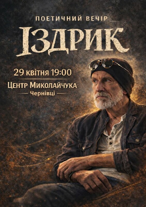 Запрошуємо вас на творчий вечір видатного українського письменника, чия поезія вражає глибиною, а думки змушують переосмислювати звичне. Це буде більше, ніж літературна зустріч — справжній діалог з митцем, чиї тексти стали культовими. Скористайтеся унікальною нагодою поринути у світ слова разом з Юрієм Іздриком!