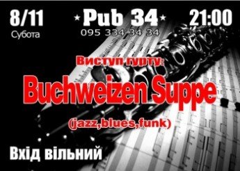 25 жовтня, в суботу, в ПАБ 34 відпочиваємо під музику гурту «Buchweizen Suppe »!