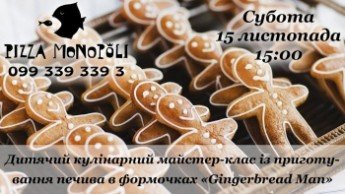 Ресторан «Pizza Monopoli» запрошує Вас та Вашу сім'ю на безкоштовний дитячий кулінарний майстер-клас із приготування печива в формочках «Gingerbread Man»!