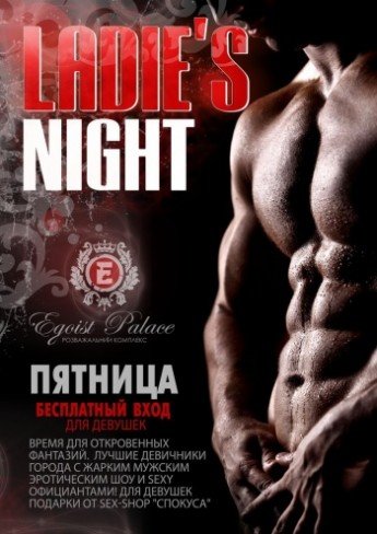 Навіщо чекати суботу! Щоп'ятниці всі дівчата міста збираються в РК «Egoist Palace»! Для вас вечірки без кордонів і комплексів з кращими чоловічими еротичними шоу!