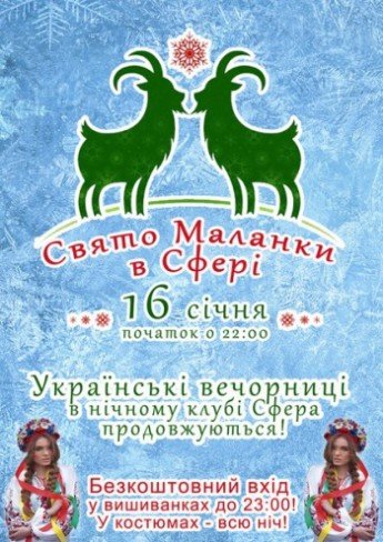16 січня в нічному клубі СФЕРА відбудеться вечірка в атмосфері веселого та драйвового святкування Маланки!