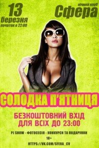 13 березня в нічному клубі СФЕРА продовжуються найзапальніші п'ятничні вечірки в Чернівцях!
