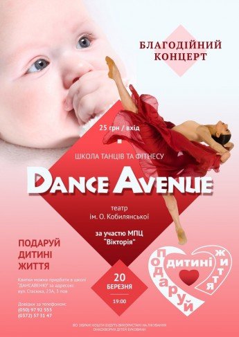 БЛАГОДІЙНІЙНИЙ КОНЦЕРТ "ПОДАРУЙ ДИТИНІ ЖИТТЯ" DANCEAVENUE SCHOOL.