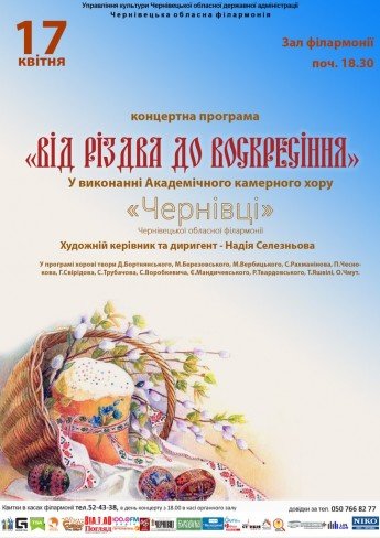 Концерт духовної музики «Від Різдва до Воскресіння» Академічного камерного хору «Чернівці».