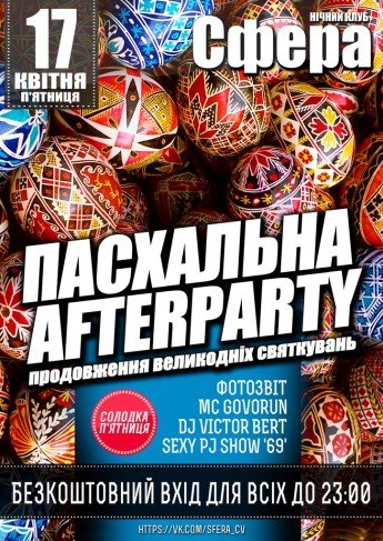 Друзі, не пропустіть першу Солодку П'ятницю після Великого посту! В нічному клубі Сфера продовжується святкування Великодніх свят! Найгарячіші п'ятничні вечірки лише в Сфері!