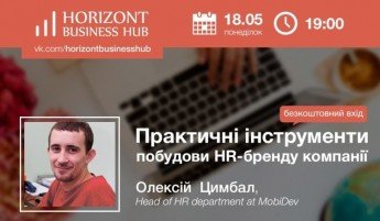 18 травня о 19:00 у Horizont Business Hub відбудеться лекція Head of HR department at MobiDev Олексія Цимбала «Практичні інструменти побудови HR-бренду компанії».