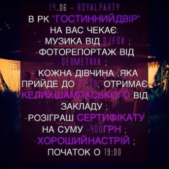 - кожна дівчина, яка прийде до 20.00, отримає келих шампанського від закладу;