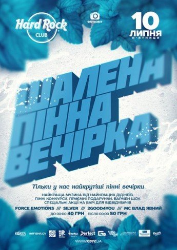 10 ЛИПЕНЬ HARD ROCK CLUB & KOKOS PROMO запрошує вас та ваших друзів на ШАЛЕНУ ПІННУ ВЕЧІРКУ , єдина пінна вечірка в місті, для тих хто не встиг побувати у нас на шалених вечірках, ви просто зобовязані бути разом із нами !