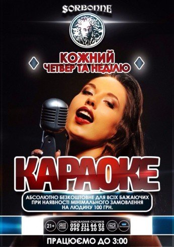 Кожного четверга та неділі всі пісні в караоке абсолютно *БЕЗПЛАТНО))