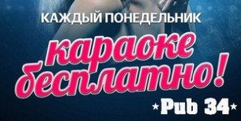 Кожен понеділок КАРАОКЕ в ПАБ 34 БЕЗКОШТОВНО!