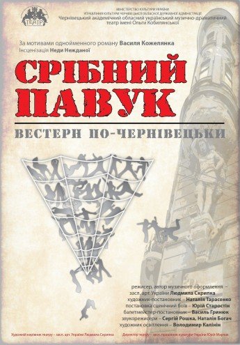 - Жанр нашої вистави - вестерн по-чернівецьки. У самій назві уже закладений гумор, - говорить режисер-постановник вистави Людмила Скрипка. - У той час Чернівці по-справжньому нагадували західний вестерн. Настільки події були гострими та ріс криміналітет. До речі, коли почали розгортатися останні події у країні, я зрозуміла, що Кожелянко був якимось пророком. Чи міг він знати, що після написання твору відбудеться своєрідне дежавю? Дія роману розгортається у 1939 році. Зокрема, ідеться про те, як відбувся аншлюс між Австрією та Німеччиною. Гітлер зробив референдум, на якому 97 відсотків проголосувало за воз’єднання Австрії з Німеччиною. Можемо провести своєрідні паралелі... Життя наших персонажів відзеркалює сьогодення. Отой срібний павук настільки живий сьогодні, він ще висить над нами і своїми лапками манить кожного з нас.