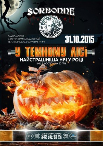 "У темному лісі" . Хочеш найяскравіших вражень - приходь до нас. На тебе чекає неповторна атмосфера загадковості та справжнього жаху. Тематична шоу-программа, неперевершений антураж та запальна музика чекають на тебе.