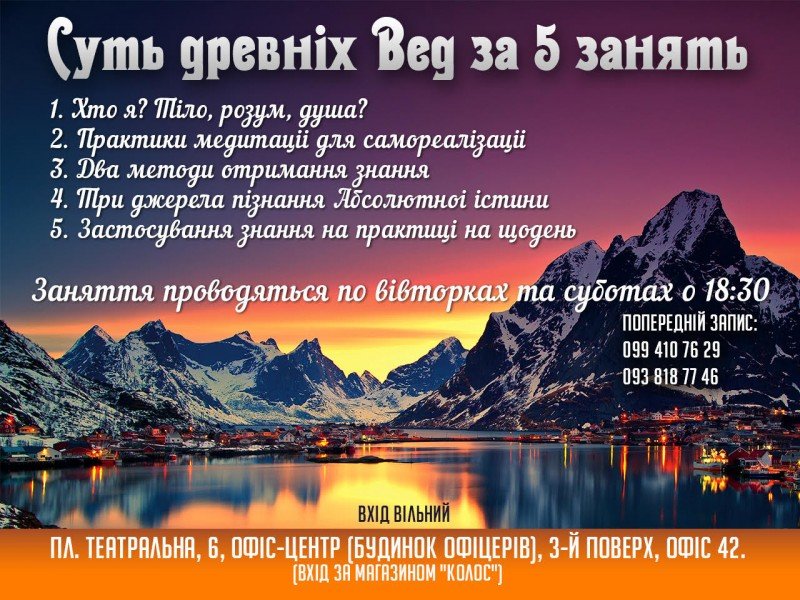 Заняття проводяться по вівторках та суботах о 18:30