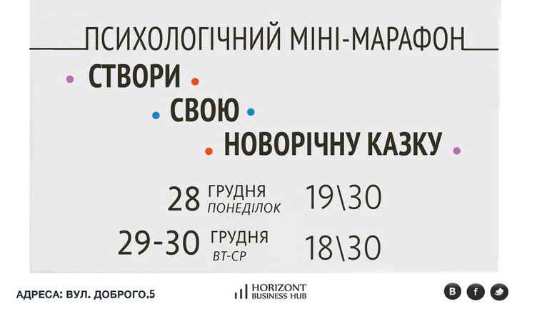 Творці курсу Психологія успішного бізнесу та кар’єри запрошують вас на Психологічний міні-марафон: «СТВОРИ свою НОВОРІЧНУ КАЗКУ», щоб зануритись в атмосферу чудес, магії та здійснення всіх мрій!
