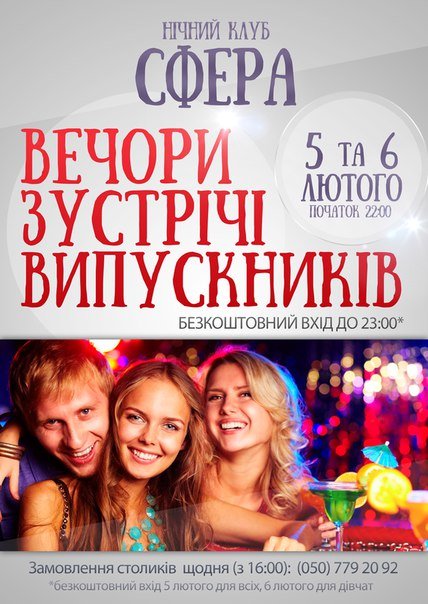 безкоштовний вхід до 23:00 5 лютого для всіх, 6 лютого для дівчат