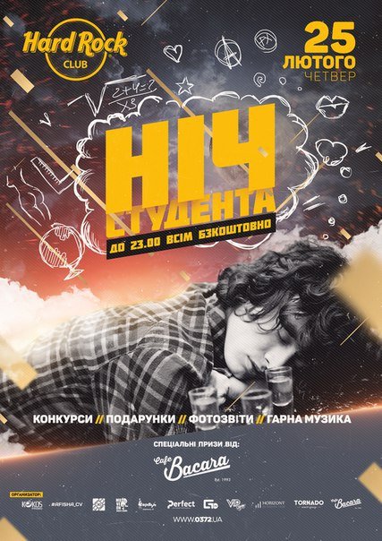 Тоді тобі до нас, адже 25 лютого у нас відбудеться Ніч Студента, вечірка, коли ти зможеш забути на будні та розважитися