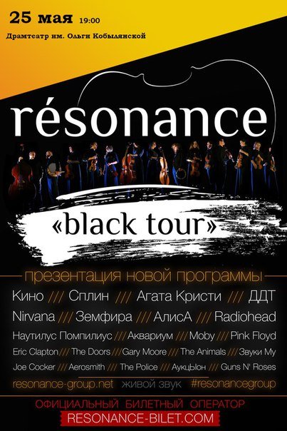 Дана програма концерту пропонує новий погляд на саму суть пісні. Відкинувши шаблони, слухач проникає в саме серце твору - саме те, що композитор спочатку в неї вкладав. І сяйво геніальної рок-музики стає ще більш відкритим, а професійний підхід музикантів, багатство скрипок, благородність альтів, шарм віолончелей, могутність контрабаса і рок-н-рольна свобода барабанів роблять його насиченим і яскравим, в тому числі завдяки проробленим аранжуванням спеціально для групи «résonance».