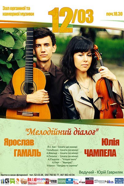 Солісти: Ярослав Гамаль (гітара) та Юлія Чампела (скрипка)