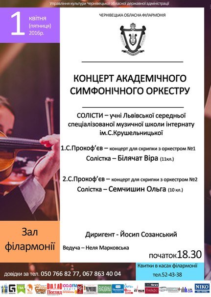 Солісти - учні Львівської середньої спеціалізованої музичної школи інтернату ім. С. Крушельницької