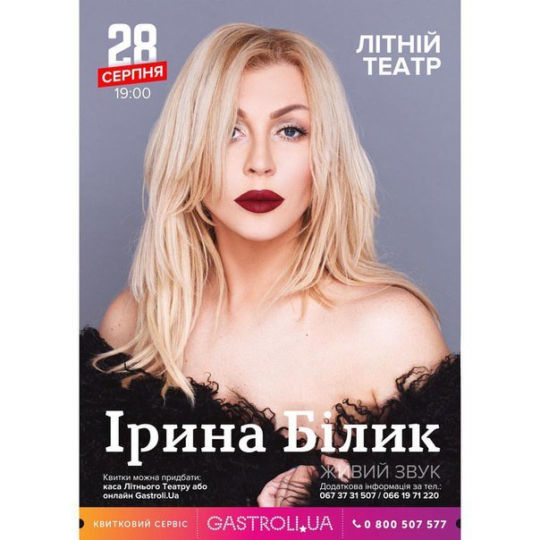 28 серпня в Літньому театрі, міста Чернівці, відбудеться яскравий концерт народної артистки України - Ірини Білик!