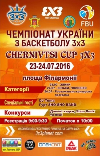 ВПЕРШЕ в Чернівцях пройде Етап Чемпіонату України з баскетболу 3х3.