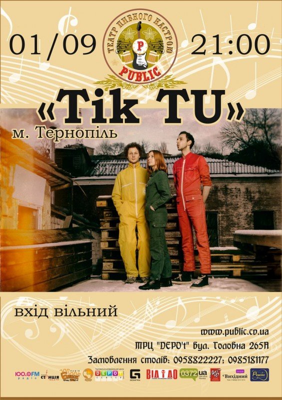 Tik Tu - на сьогодні один із найцікавіших молодих гуртів з Тернополя, що вдало грається із музичною стилістикою на основі мультиінструментальної тканини. Симбіоз synthpop, indie-pop та electronic заповнений текстовими картинками на кількох мовах, що відкриває завісу у цікавий жанровий світ. М'який жіночий голос несподівано грає із іншими інструментами у межах свого текстового навантаження, створючи особисту картинку кожного треку. Цікаво і легко із треку в трек.