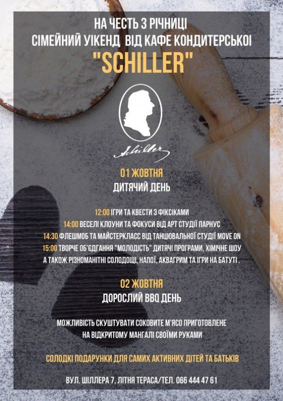 15:00 Творче об"єднання "Молодість" дитячі програми, хімічне шоу, а також різноманітні солодощі, напої, аквагрим та ігри на батуті