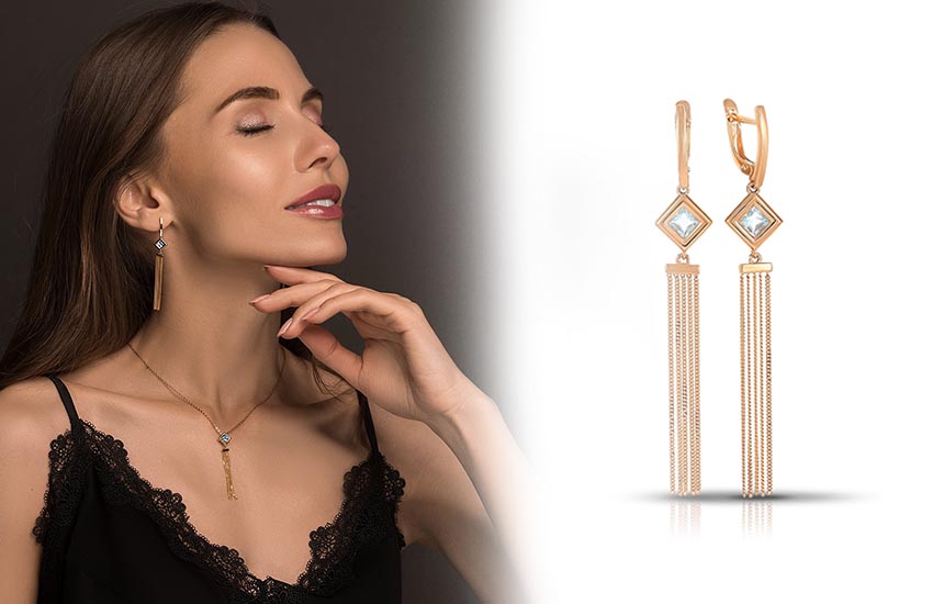 Лучше всего сочетать такие украшения с нарядами, которые открывают линию плеч. Также органично сережки-висюльки смотрятся с V-образным вырезом. Поклонницы закрытых нарядов могут использовать водолазки.