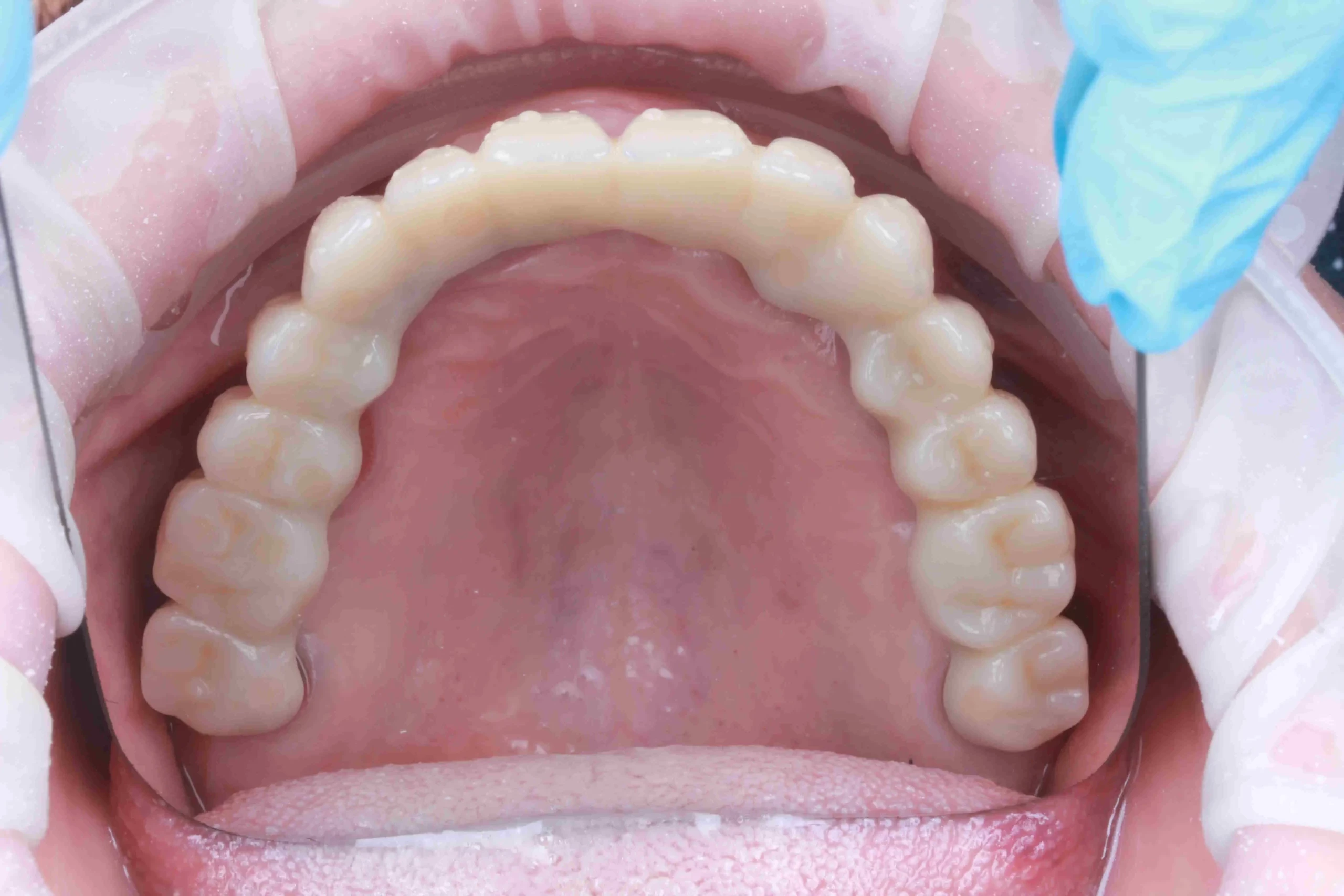 - Лабораторія – CAD/CAM фрезерування, індивідуалізація кольору, перевірка оклюзійних контактів у різних положеннях.