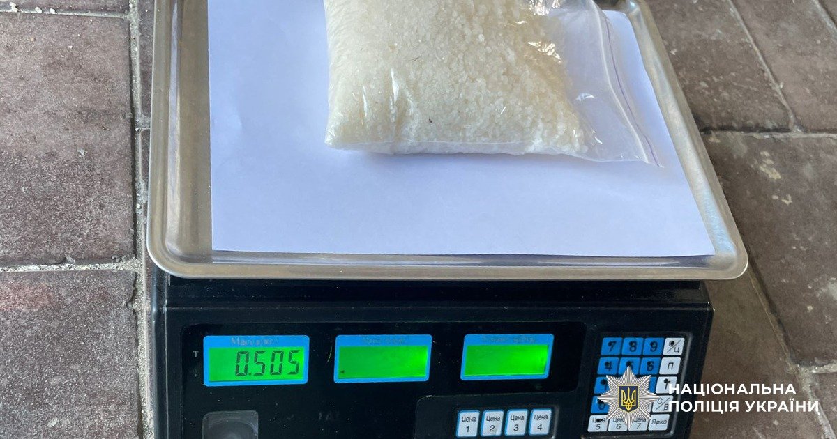 Після затримання поліцейські провели санкціонований обшук у квартирі підозрюваного. У помешканні виявили 13 пакетів із психотропними речовинами 4-ММС, PVP та амфетаміном у великих розмірах. Також знайшли пластикову ємність із залишками наркотиків. Вартість усього вилученого перевищує 500 тисяч гривень за цінами нелегального ринку.
