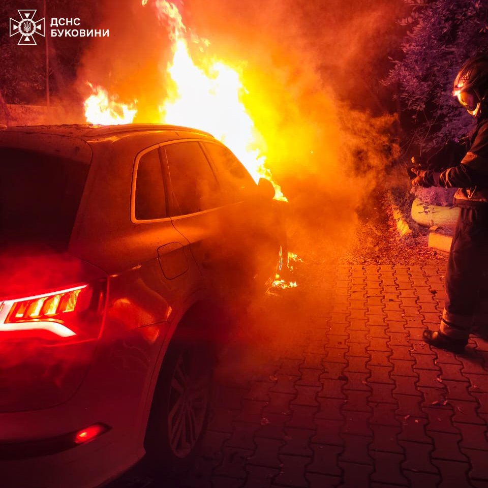 Вчора увечері у житловому районі Чернівців спалахнув автомобіль Audi Q5, який був припаркований під багатоповерхівкою. Про пожежу власник повідомив на спецлінію 101. Про це повідомляють у ГУ ДСНС у Чернівецькій області.