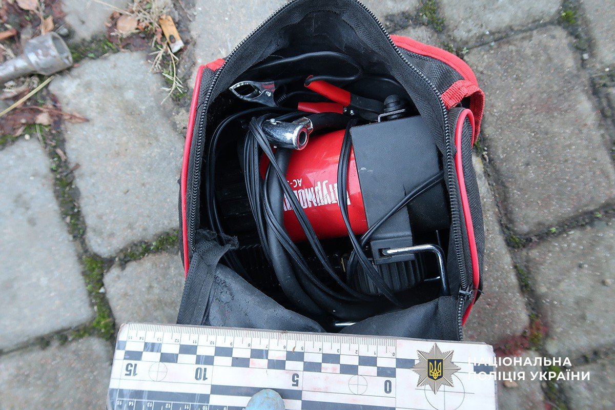 Зловмисник розбив вікна трьох автомобілів і проник всередину. Чоловік викрав колеса, акумуляторні батареї, автомобільні насоси та різні інструменти. Власники виявили крадіжки вранці та одразу зателефонували до поліції.