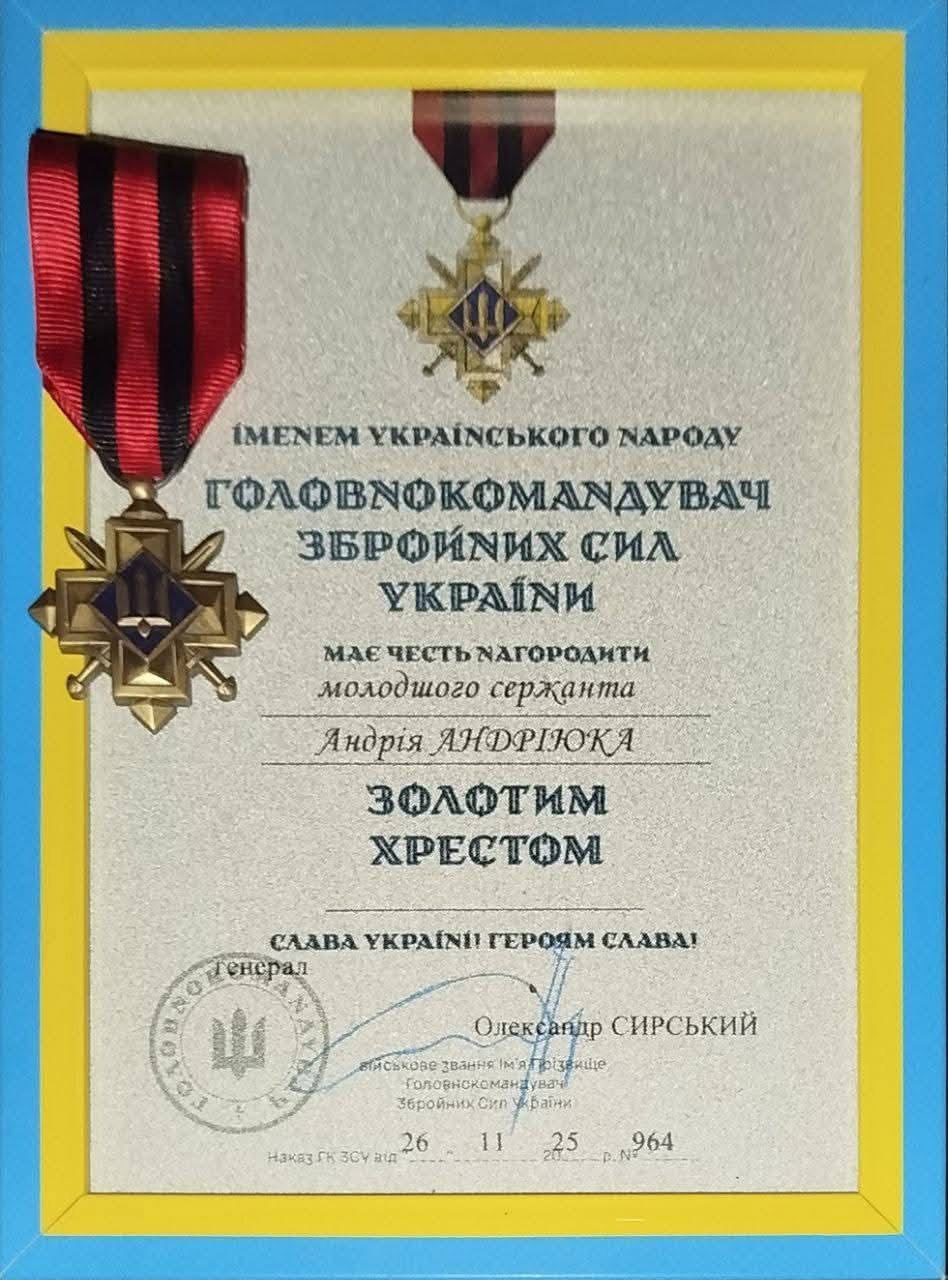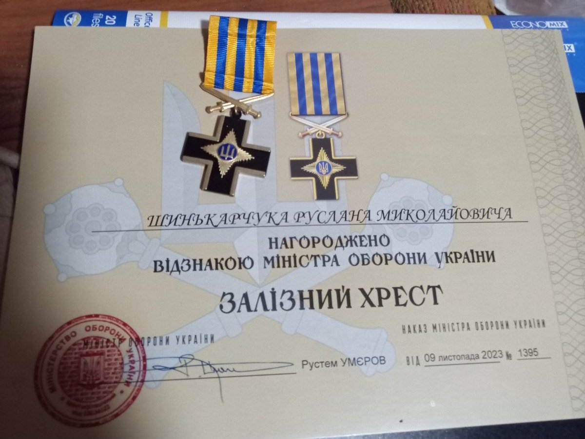 Ще одну відзнаку — «Залізний хрест» від Міністерство оборони України — присуджено Руслану Шинькарчуку з Великокучурівської громади. Нагороду вручено за високий професіоналізм, відданість Батьківщині та готовність діяти в складних умовах.
